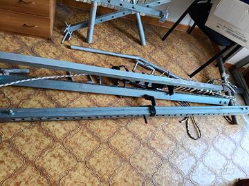 half rack da montare fatto dal fabbro in ferro zincato con barra per trazioni e ganci bilanciere e spotter e porta dischi per dischi da 50 mm