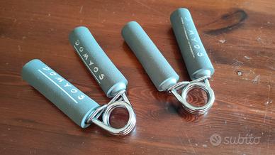 Coppia di attrezzi handgrip per allenamento mani marca Domyos di Decathlon. Molla media/hard.