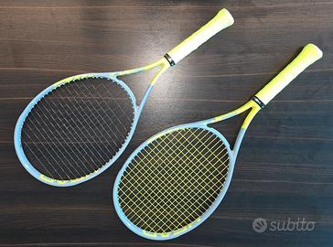 Sono due racchette perfettamente identiche. Le corde sono le stesse ma diverso colore per riconoscerle. Usate da bambina di 35/40 kg passata ad altra racchetta più pesante. Non accetto proposte assurde. Posso venire incontro per le spese di spedizione (quindi non più di 10 euro...)