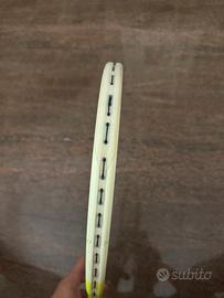 Racchetta utilizza sempre con cura, no crepe, no rotture, solo due segni nel grommet.