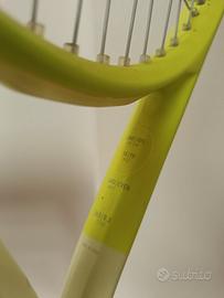 N.B. La racchetta è praticamente perfetta, serigrafie, copritesta e passacorde intonsi, overgrip nuovo, incordata solo due volte.