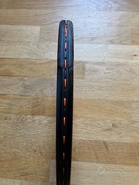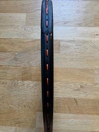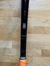 Head Gravity MP, manico L3, schema corde 16x20, bilanciamento 32,5 gr. 295, grip in cuoio nuovo, appena incordata con Lynx Tour 1,20, kg. 20, seminuova. Disponibile anche un altro telaio uguale, incordato allo stesso modo, con normale grip Head.