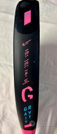 Design double-face (diverso sui due lati), la RACCHETTA DA PADEL GRAVITY PRO è estremamente confortevole che garantisce un eccellente controllo, come richiesto dal gioco moderno. Inoltre. La costruzione Auxetic garantisce una sensibilità e un tocco eccezionali, la nuova forma arrotondata migliora il controllo e aumenta sweetspot e il carbonio sulla superficie d'impatto aumenta precisione, controllo e tocco.
