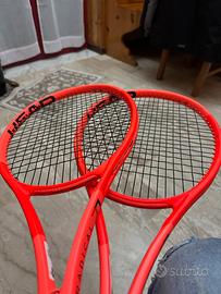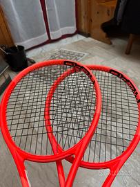 Vendo coppia radical mp L2 praticamente nuove. Non hanno pratocamente un graffio. Le racchette sono state comprate al negozio (come si vede nell’etichetta bianca)e sono state castomizzate per essere identiche di peso e bilanciamento. Perfettamente uguali. Il telaio 1 ha 8 ore di gioco, telaio 2 1 ora di gioco. Cambio a malincuore perche racchetta troppo tecnica. Svendo per acquisto racchetta piu leggera. Preferirei vendere la coppia avendo speso soldi per renderle perfettamente uguali.