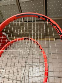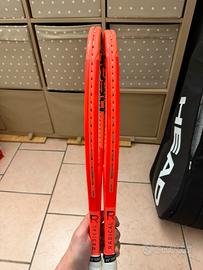 Vendo coppia Head Radical Pro 2025 custom Peso, Inerzia E Bilanciamento identici (vedi etichetta in foto 6) telai con 15 ore di gioco a testa. Incordate da pochissimo con Lynx Tour 22/21 (non guardate l’adesivo perche non l’ho piu cambiato). 2 ore ed 1 ora di gioco effettivo. Telai in condizioni eccellenti, prezzo per la coppia