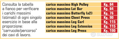 Grazie al sistema di pulegge, ogni esercizio ha un peso massimo diverso: Carico massimo High Pulley kg 84