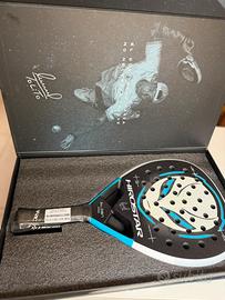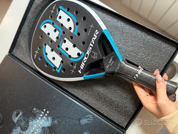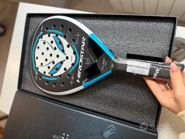 Pala Hirostar Alien PRO 26 – nuova identità della pala di Tolito Aguirre, arrivata alla sua terza evoluzione. Modello di alto livello, pensato per giocatori esigenti che cercano potenza, precisione e un design unico. Nuova estetica con dettagli Cosmic Blu, aggressiva e super moderna. 🏆 Prestazioni top in campo: Superficie in Carbonio 24K + nucleo Eva Black X-Treme → massima reattività e potenza esplosiva, ideale per smash e gioco aereo senza perdere controllo. 🎯 Controllo e stabilità: Ponte centrale aerodinamico con sistema antivibrazione → comfort superiore anche nei match intensi. ⚙️ Tecnologia Smart Holes: Distribuzione avanzata dei fori → migliore aerodinamica, sweet spot ampliato e grande maneggevolezza. ✨ Finitura premium: Superficie texturizzata opaca con effetto sabbiato → perfetta per generare spin e colpi tecnici. 📦 Nuova, mai utilizzata, con confezione originale. 💰 Prezzo: 265€ (nella web si trova a 315€) Spedizione veloce, prezzo leggermente trattabile, pacco curato nei dettagli.