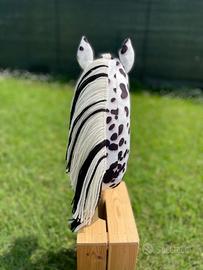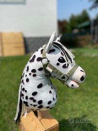 September, Appaloosa leopardo, è un Hobby horse formato A4 di produzione artigianale, realizzato a mano con cura e passione (all'interno ha un cuoricino di feltro rosso!), anche la cavezza e la lunghina sono fatte da me. Il colore della cavezza con lunghina è a scelta, pistacchio o celeste (sono comprese anche redini dello stesso colore della lunghina). Imbottitura anallergica, manto in tessuto Shorty 1,5mm. Chiedete in chat tutte le info che desiderate su dimensioni o altro, anche altre foto! È nuovo.