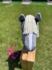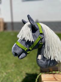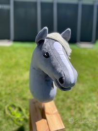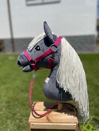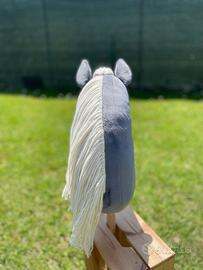 July, grigio scuro e criniera bianco latte, è un Hobby horse formato A4 di produzione artigianale, realizzato a mano con cura e passione (all'interno ha un cuoricino di feltro rosso!), anche la cavezza, la lunghina e le redini sono fatte da me. Il colore della cavezza con redini e lunghina è a scelta, verde o fucsia. Imbottitura anallergica, manto in tessuto Shorty 1,5mm. morbido, simile al velluto. Chiedete in chat tutte le info che desiderate su dimensioni o altro, anche altre foto! È nuovo.