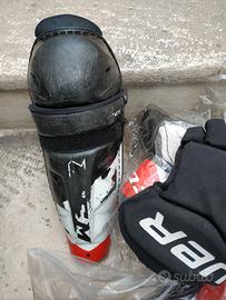 Vendo attrezzatura completa per hockey con ginocchiere e gomitiere, guanti e casco. Maglia protettiva con pantaloncini con protezioni. Si aggiunge anche mazza hockey. Tutto idoneo per bambini 9/11 anni