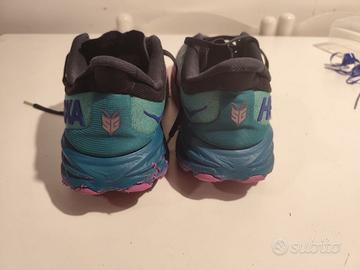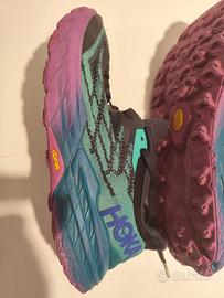 Vendo scarpe da running HOKA One One Speedgoat 5 47.5 Poco usate, tenute sempre benissimo, solette interne presenti e perfette, come da foto, suola VIBRAM non consumata, come da foto. Nessun difetto da segnalare. SENZA confezione originale. Misura EU 47 1/2, US 12.50 calzano un po' strette in punta, caratteristica della HOKA