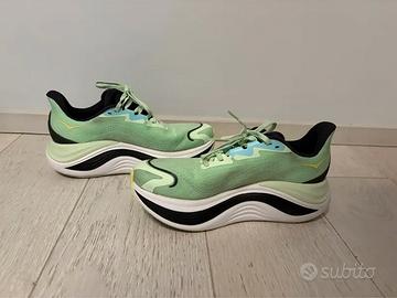 L’esperienza d’uso su strada più morbida. Durante il processo di creazione di Skyward X abbiamo deciso di ignorare le convenzioni. Il rivoluzionario sistema di sospensione di questa sneaker, che presenta caratteristiche estreme di morbidezza e fluidità, si comprime e torna a espandersi a ogni passo, grazie alla piastra convessa in fibra di carbonio. Nel punto più vicino al piede si trova la morbida e resiliente schiuma PEBA che offre un’esperienza d’uso dinamica e ammortizzata, mentre la struttura in EVA applicato tramite un innovativo processo garantisce la stabilità ideale per macinare chilometri in scioltezza.