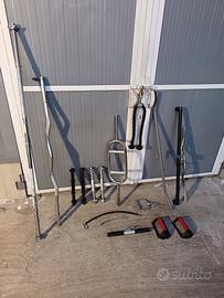 Vendo palestra da casa completa. Attrezzo multifunzione FIT GENERATION, ideale per allenamento total body (croci petto, spinte petto, spinte tricipiti, leg press, leg curl, leg extension, curl cavo, rematore cavo). Attrezzo multifunzione DOMYOS, ideale per allenamento total body (panca petto, panca spalle, curl larry scott, leg curl, leg extension, lat machine). Gabbia squat artigianale con gancio per rematore, maniglie trazioni e sbarre porta pesi. 133kg di dischi divisi in 8pz 10kg, 6pz 5kg, 2pz 2,5kg, 4pz 2kg, 8pz 1kg, 4pz 0,5kg. Bilanciere dritto Bilanciere EZ Bilanciere presa a martello Manubri da comporre Attrezzi vari per cavi alla multifunzione Kit fasce elastiche per allenamento a corpo libero Step Cyclette.