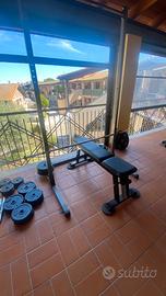 Vendo home gym completa di: -Rack multifunzione con pin di sicurezza e barra per trazioni -Panca regolabile sedile e schienale rifoderata da poco -Macchinario multifunzione (2 chest press, 1 cavo basso, 1 cavo alto) pacco pesi regolabile -2 bilancieri -140kg ( 4x10; 2x10 con prese; 10x5; 2x5 diametro maggiore; 10x2) tutti gommati -Manubri componibili Per informazioni non esitate a contattarmi :)