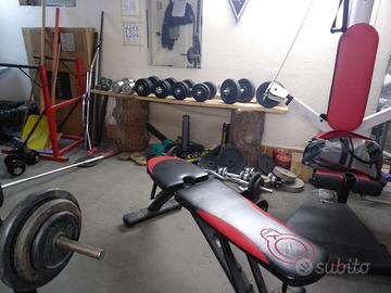 Vendo causa trasferimento in altra città Home Gym Completa: (1) Panca Reclinabile (2) Stazione Rack (3) 10 coppie di manubri (4) Stazione Multi Gym Weider Pro 3000 (5) Stazione Multi Gym Weider Pro 5000 (6) Nr. 3 Bilanceri (7) Barra EZ (8) Barra tricipiti e cavi tricipiti (9) Cintura nuova (10) Dip Station (11) Accessori impugnature e barre varie