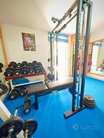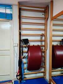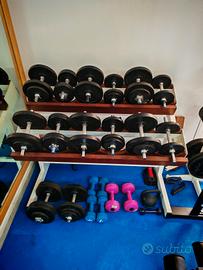 - manubri di varie dimensioni e peso con rastrelliera in legno