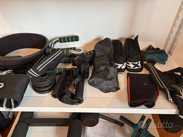Tutto in buone condizioni a parte qualche graffio, un bilancere leggermente arrugginito e anche un paio di dischi