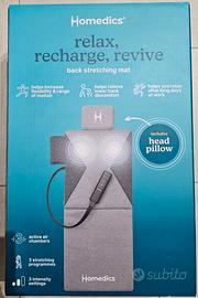 NUOVO E MAI UTILIZZATO. IN CONFEZIONE ORIGINALE 3 camere d'aria attive per la parte superiore, inferiore e i fianchi 3 livelli di intensità 3 programmi di stretching Leggero e portatile - si piega facilmente per riporlo comodamente Cuscino per la testa incluso