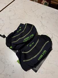 Set di calze a compressione pfi 30 riscaldate complete di batteria. Con resistenza integrata per il massimo comfort. Capacità di riscaldamento regolabile su 4 livelli direttamente sul pacco batterie. Funzione di riscaldamento Power Boost. Riscalda la zona delle dita e la parte anteriore del piede.
