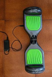 Vendo hoverboard Tekk Carbon Fluo 6.5” con finitura effetto fibra di carbonio e inserti verdi.