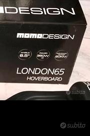 Hoverboard MOMO DESIGN LONDON 65, 2 ruote 6,5 pollici, 2 motori con potenza max di 700 Watt velocità max 15 km/h, batteria al litio con una capacità di 4400mah con autonomia di 20 km e tempo di ricarica di 3 ore.