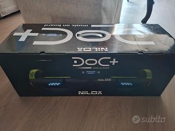 Vendo hoverboard Nilox 6.5 doc+ balance scooter praticamente nuovo, comprensivo di tutti gli accessori (alimentatore, cover, portatracolla). E' dotato di luci led e di connessione audio bluetooth