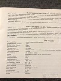 Vendo hoverboard usato pochissime volte. I dati tecnici sono disponibili nella foto allegata.
