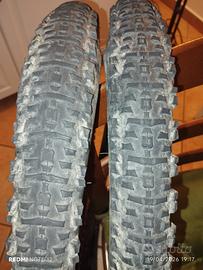 vendo dopo 2 uscite previ. Pneumatici molto scorrevoli indicati per sterrati secchi, strade bianche e asfalto. Molto comodi essendo da 2.30, offrono un eccellente grip e ammortizzamento. Vendo in coppia.