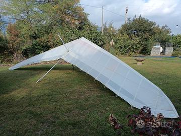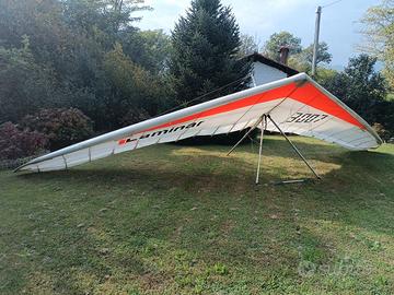Vendo per conto di un amico deltaplano Icaro 2000 Laminar 14 del 1996 fermo da qualche anno. Prima di essere dismesso era stato revisionato dalla casa madre, quindi telaio e cavi sono in perfetto ordine di volo. La vela è un full Mylar sull'estradosso e si presenta in buono stato (estremità alari con qualche segno di usura e qualche piccola toppa sul bordo di attacco, come da foto).