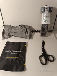 Composizione basica di ifak M.O.L.L.E. con sgancio rapido. -Tourniquet originale CAT GEN7. -Benda Israeliana. -Garza emostatica. -Forbice taglia indumenti.