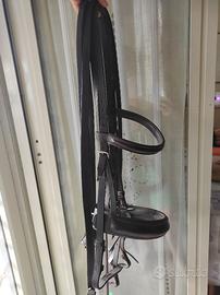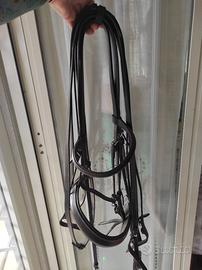 Imboccature Lorenzini in titanio complete di testiera dressage in cuoio con doppie redini, usata solo tre volte ed in ottimo stato. Misure imboccature: - misure morso 135 x 16 - misure filetto 140 x 14 SI VENDE TUTTO INSIEME.