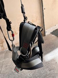Imbracatura completa per accesso su corda, dotata di un innovativo schienale ergonomico che avvolge la schiena e le spalle dell’utilizzatore. Schienale e cosciali areati. Attacco ventrale caratterizzato da due anelli concentrici: uno per l'alloggiamento dell'anello in alluminio per il collegamento di cordini ed attrezzi, ed uno per il collegamento dell'imbracatura pettorale e del bloccante ventrale. Fettuccia di tensionamento per bloccante ventrale. Fibbie a sgancio STS montate sui cosciali. 5 anelli di attacco in lega d’alluminio: sternale e dorsale per l'anticaduta, ventrale per la sospensione, laterali per il posizionamento e la trattenuta.