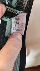 L'imbraco è stato usato relativamente poco, ma mostra segni del tempo e ha un occhiello in plastica (quello che si usa per i rinvii) che si è staccato. L'altro è usurato. Per il resto l'oggetto è funzionale.