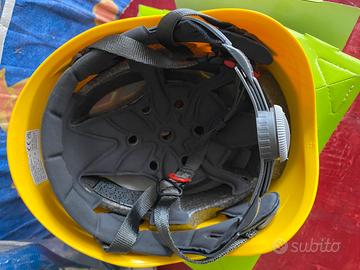 Imbracatura di protezione anticaduta certificata + elmetto di protezione con sottogola.
