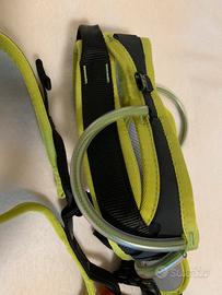 Imbragatira da arrampicata sportiva, via ferrata, parchi avventura. Cintura lombare ergonomica e dotata di una sola fibbia di regolazione. Cosciali fissi flessibili con cinghie elastiche che si adattano perfettamente alla forma del corpo. Taglia S adulto