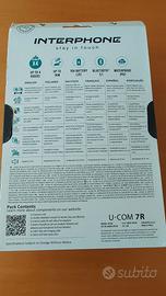 Vendo nuovo sigillato INTERPHONE U-Com 7R - Doppio - Interfono Moto Bluetooth 5.2 Rimovibile e Batteria Integrata 15 ore Autonomia, 4 Moto 1 Km, Compatibile TFT e GPS, Impermeabile, Speaker 32mm, per tutti i Caschi Compatibilità: con tutti gli smartphone dotati di tecnologia Bluetooth, con i navigatori gps con tecnologia Bluetooth e profilo HFP, estesa e nativa con interfoni brand Sena e con i sistemi OEM integrati nei caschi, con interfoni di altri brand in modalità Anycom e con tutti i sistemi TFT e GPS Caratteristiche Tecniche: Tecnologia Bluetooth 5.2, Comunicazione a 4 interfoni fino a 1km, Durata batteria in modalità solo intercom fino a 15 h (durata variabile con musica/gps/radio in sottofondo), Compatibilità estesa con i sistemi Sena, sistemi OEM integrati nei caschi, TFT e GPS presenti sul mercato, Impermeabilità (IP67) Caratteristiche Generali: Menù con guida vocale multilingua, Connessione allo smartphone (fino a 2), Ascolto/condivisione musica, Conversazione tra interfoni con sottofondo audio delle funzioni gps/musica, Possibilità di caricare l’interfono durante l’utilizzo, App di gestione iOS e Android, Centralina removibile Audio: Microfono direzionale antivento e con eliminazione del rumore, Regolazione automatica del volume in base alla velocità di marcia, Vox intercom regolabile su 5 livelli, Intercom HD, Possibilità di montare gli Speaker HD da 40mm opzionali con Equalizzatore Audio Contenuto del Pack: Staffa di montaggio a clip e adesiva, Speaker da 32 mm Top Sound, Microfono boom (caschi jet e modulari) e adesivo (caschi integrali), Cavo usb type C per dati e ricarica, Guida rapida.