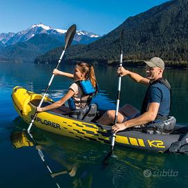 Intex Explorer K2 Kayak, 2-Person Inflatable Kayak Set with Aluminum Oars and High Output Air Pump