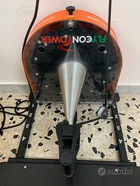 I sistemi Inerziali prodotti FLYCONPOWER si differenziano dagli altri presenti sul mercato per via di due peculiarità tecniche progettuali: L'utilizzo di un elemento conico, quale "albero di trasmissione" del moto rotatorio impresso al volano La possibilità di aumentare o diminuire il "carico inerziale" aggiungendo o sottraendo micro/masse sul volano (da un minimo di 2 ad un massimo di 12) L'aggiunta o la diminuzione delle masse sul disco volanico, aumenta o diminuisce la capacità del medesimo di generare energia cinetica Il CONO permette di variare la difficoltà nella fase cruciale di decellerazione/accellerazione del sistema volanico Detta fase è quella in cui si può ottenere un alto o basso carico eccentrico a seconda, sia del settaggio predisposto sulla macchina, sia dalla tecnica e dinamica di svolgimento dell'esercizio