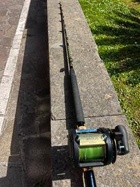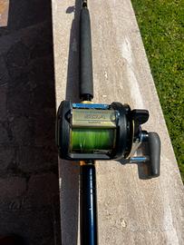 Canna drifting e traina Italcanna Cayman 50 lb in ottimo stato anelli a carrucola perfetti usata pochissimo abbinata a mulinello Shimano TLD 50 lb doppia velocita in ottimo stato imbobinato con nailon 0,70 Ande
