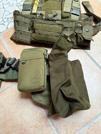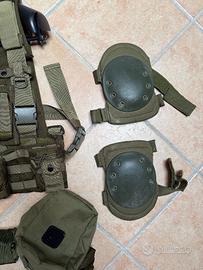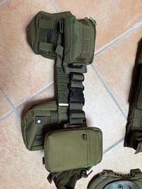 ciao a tutti per cambio tipologia vendo tutto quello che si vede in foto tutto il necessario per poter giocare a soft air o cosplayer l'unica cosa che terró é il paracord avvolto nel cinturone pr il resto tasca pane tasca porta accessori porta cellulare tasca posrta serbatoi esausti ecc ecc