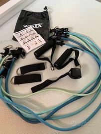 Contenuto della confezione5 tubi di espansione, 2 maniglie, 2 cinghie alla caviglia, 1 ancoraggio per porta, borsa per il trasporto