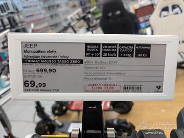 Monopattino elettrico Jeep Adventurer comprato a fine novembre 2022 ed utilizzato solo 8 giorni in tratta casa/lavoro e poi inutilizzato causa cambio città e lavoro.