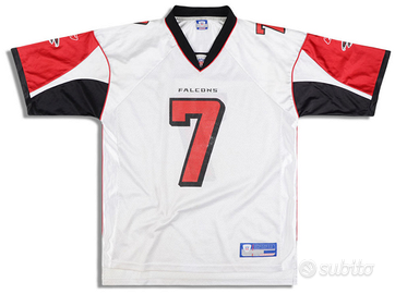 Michael Vick Authentic White Atlanta Falcons Jersey di Reebok, bianca (maglia da trasferta), taglia XXL #7. Indossata solo una volta. La maglia autentica di Vick NFL è realizzata al 100% da un corpo in rete di nylon pesante pro brite, carré e maniche in nylon lucido, carré a doppio spessore, scollo a V a coste smussate. Il logo Reebok ricamato e le toppe del logo Atlanta Falcons si trovano su entrambe le maniche, nonché uno scollo a V frontale con scudo ricamato NFL . L'autentica maglia da gioco Vick-Falcons è realizzata secondo le specifiche esatte di quelle indossate dai professionisti.
