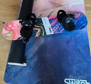 Setup perfetto per snowboarder e wakeboarder che vogliono allenarsi ovunque e in qualsiasi momento: - Jibbing Board: lunga 110cm, con anima in legno e fibra di vetro triassiale per un flex perfetto, soletta in P-TEX: lo stesso materiale dei veri snowboard, bordi in Poliuretano: resistenti agli urti e sicuri per le superfici interne, stance: regolabile da 34 cm a 58 cm; - Attacchi regolabili (Taglie EU 35-46) da utilizzare a piedi nudi o con le scarpe da ginnastica; - Training Rail / Box, 2 funzioni in 1: passa istantaneamente da un tubo (rail) a un box piatto per variare i trick; - Tappetino che protegge il pavimento e attutisce le cadute. Verrà spedito nella sua scatola originale, aperto e mai utilizzato. Ulteriore sconto con scambio a mano in zona Milano e dintorni.