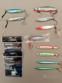 Esche artificiali jig adatti a tutte le situazioni di pesca , la maggior parte mai usati e altri usati pochissimo tutti in buone condizioni con omaggio ancorette moschettoni e split ring , il tutto delle migliori marche Duo Maria Xesta JigPara Major Craft Shimano Daiwa Abu Garcia Sebile Savage Gear Jatsui Owner