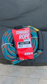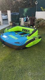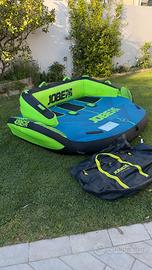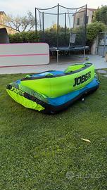 Gonfiabile da traino 3 persone Jobe Binar, come nuovo, usato 2 volte. Gonfiabile trainabile 3 persone • Nylon 840D con doppia cucitura • Valvola unidirezionale Boston • maniglie in neoprene. Corda traino galleggiante Jobe, mai usata. Borsa da trasporto inclusa.