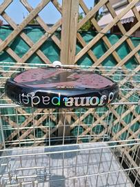 Vendo pala in ottime condizioni , comprata a € 190 a metà febbraio 2026 . Ho ancora 5 grip compresi nella scatola mai usati . I segni in testa sono dovuti a 5 minuti che ho fatto usare la pala a mia moglie. Pesa 364 gr con due overgrip e laccetto quindi credo senza overgrip siamo sui 354. Pala dal manico piccolo , porta il nome di una giocatrice donna ma e' un cannone. Punto dolce ampio , peso in testa , un martello. La vendo perché cerco una pala più agile.