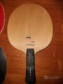 Vendo racchetta completa Joola Tpe Perform manico concavo, peso inferiore ad 85 gr. 5 strati legno (hinoki esterno) + 2 interni in carbonio. Telaio offensivo, rigidità media. Condizioni molto buone. Gomme Ktl xp pro (rossa praticamente nuova) taglio large. Si accetta pagamento solo tramite Paypal. Spedizione con corriere inclusa. Montaggio gomme incluso se richiesto.