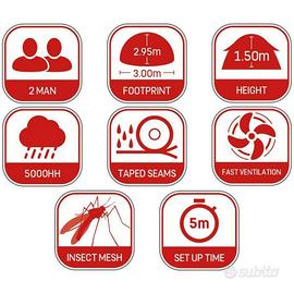 Nel prezzo è compreso il pavimento impermeabile (si collega con gli strap), le barre di tensione, i picchetti a T e le borse per il trasporto. (Si monta come una Fox)