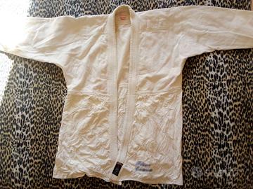 Judogi molto robusto – marca Matsukaze – materiale 100% cotone – taglia 5 / 180 cm – usato pochissimo (solo in un paio di gare), in condizioni ottime (nessuna lacerazione o segno di usura)